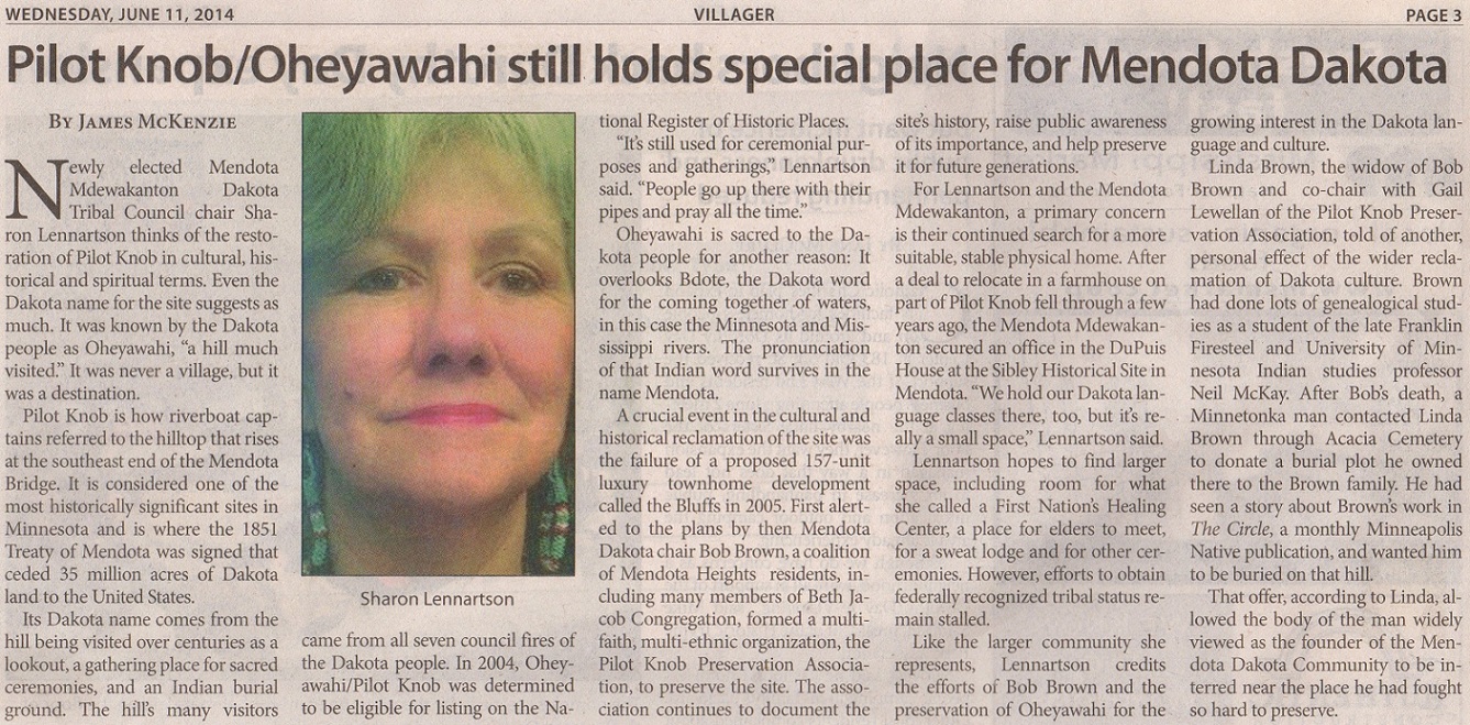 Pilot Knob/Oheyawahi. & becoming new Tribal Chairwoman, for the Mendota Mdewakanton Dakota Community.