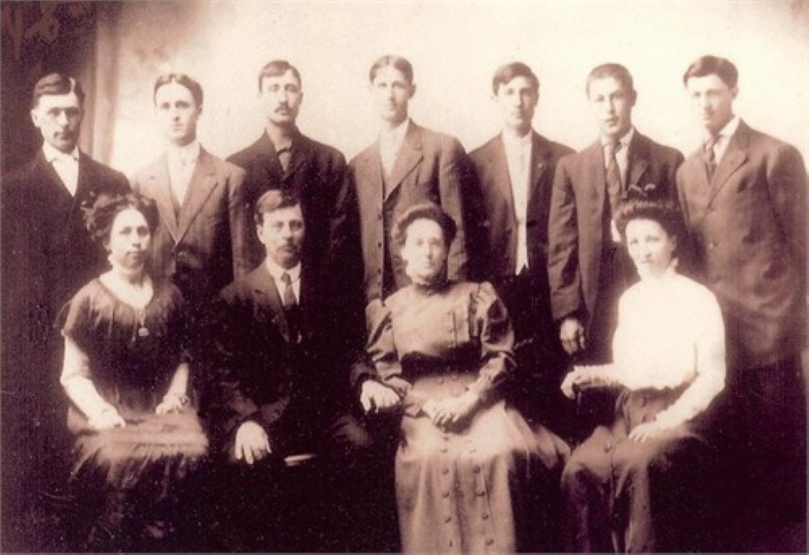 Henri Coursolle family 1st row, Clara, Henri Sr., Hermine, and Mary C. Vincent. 2nd row, Albert Nazard, Henri Jr., Louis Dolard, Victor, Edward and Joseph