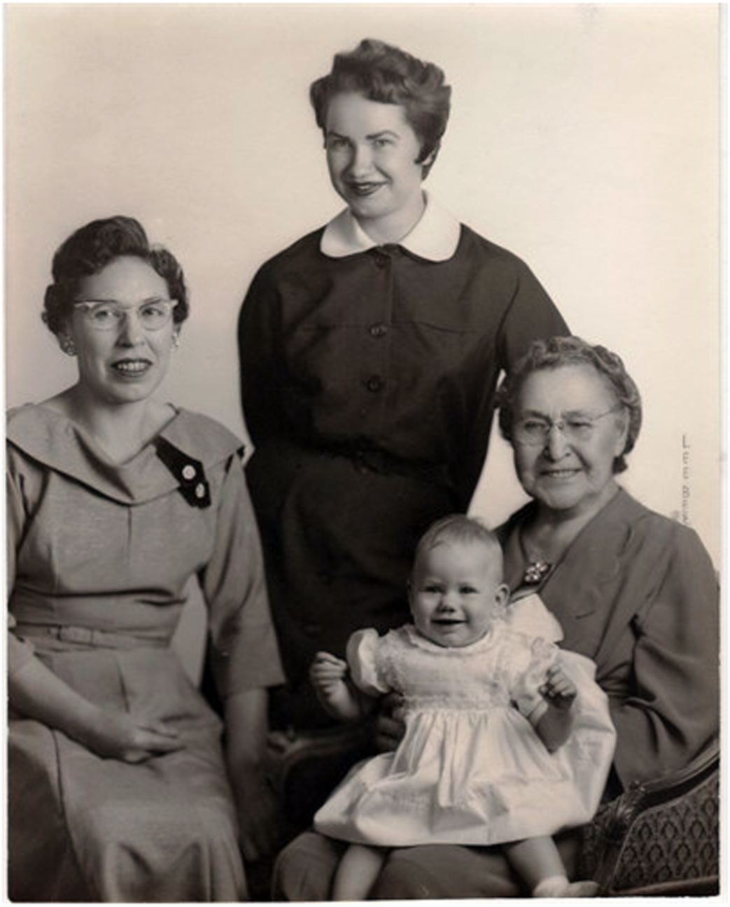4 generations of the lacroix family: Marie Nordin Felix, Clarice Gombold Felix, Jennie LaCroix Felix, is Lilly Felix older sister and baby Claudia
