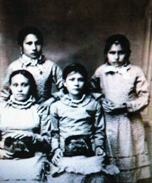 Freniere Sisters: These beautiful little girls are the Freniere sisters. The girl in the front left may be Rosalie Freniere. Does anyone know these girls names?