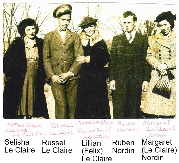 LeClaire family: Selisha Le Claire, Russel Le Claire, Lillian (Felix)Le Claire, Ruben Nordin, Margaret (Le Claire) Nordin