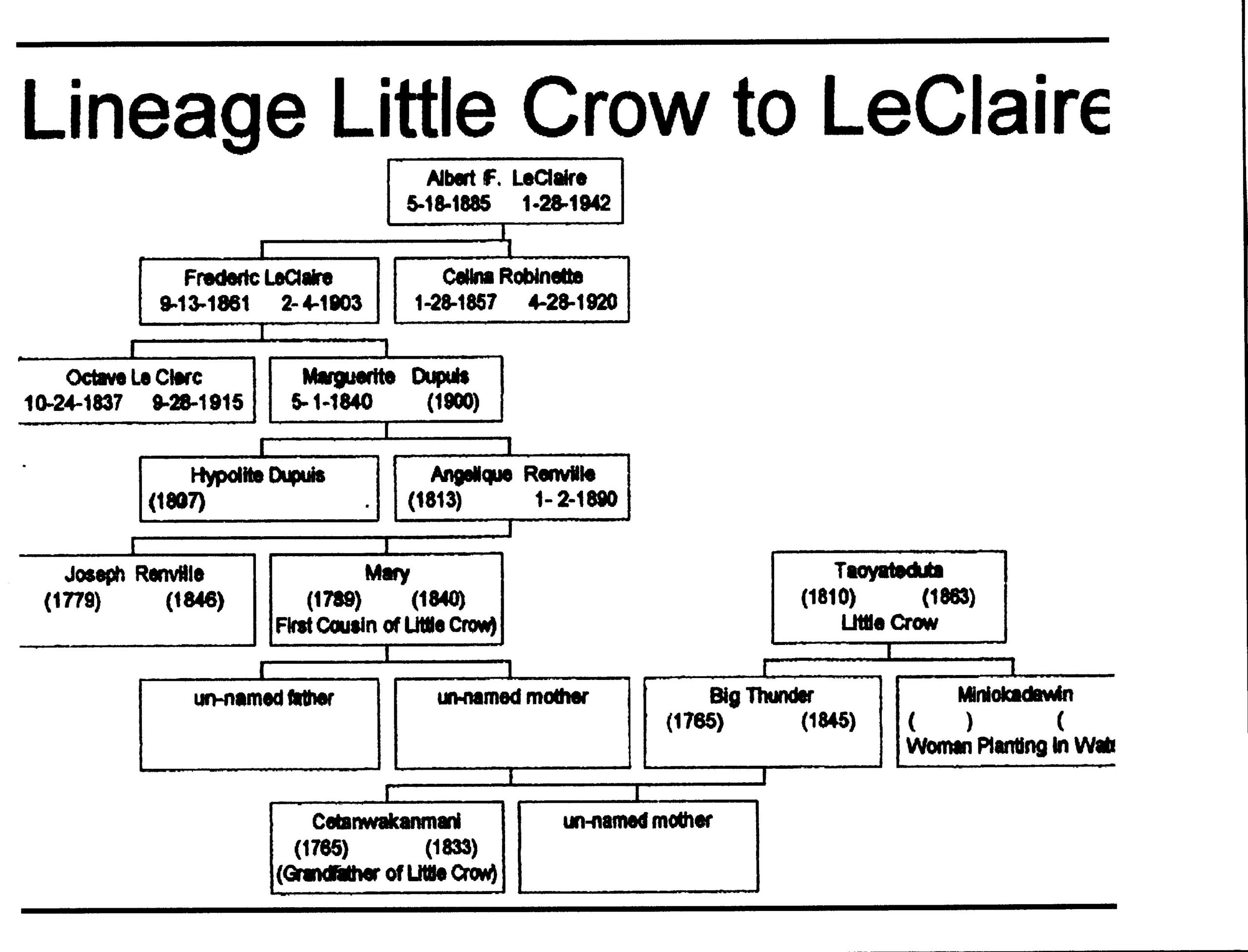 Lineage to Little Crow for all LeClaires this has to be updated.