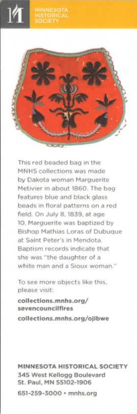 Marquerite Metivier donated this red beaded bag to MNHS in about 1860.