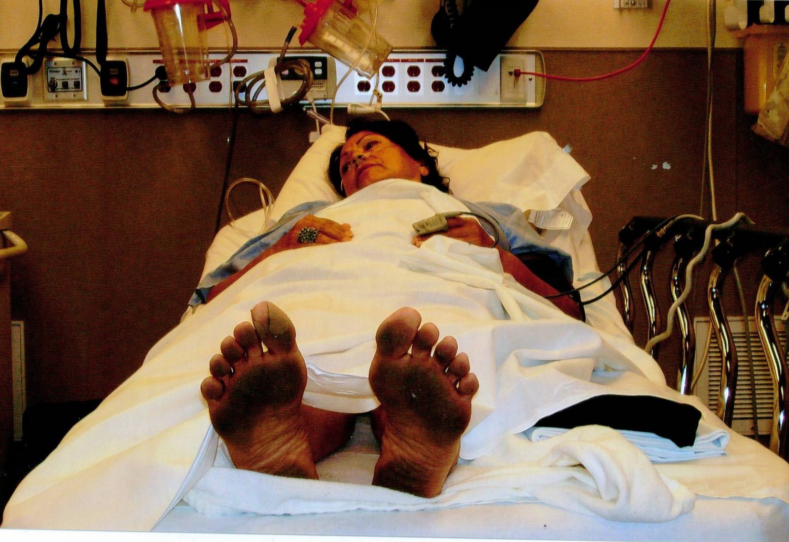 Kahentinetha Horn, publisher of Mohawk Nation News, hospitalized with a heart attack on June 14, 2008, after being attacked by special forces in Canada at the Cornwall/Akwesasne border. Photo by Sagowaiaks.