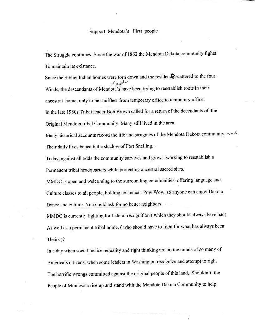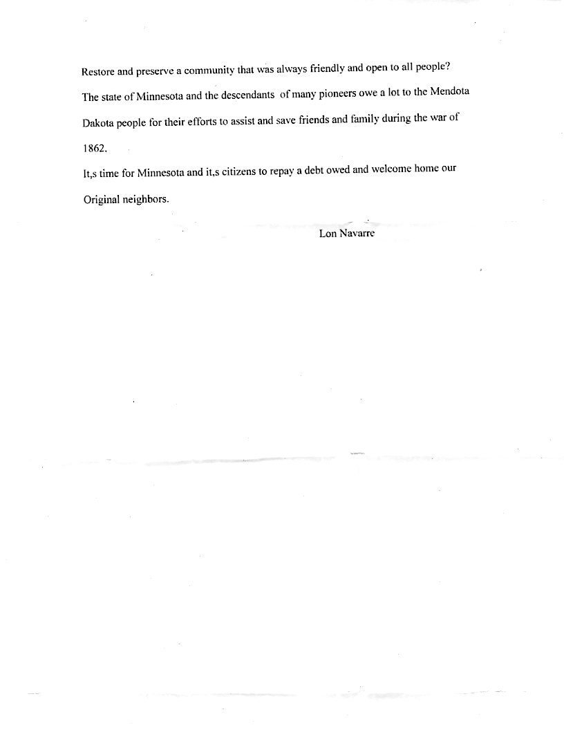 Support Mendota the First People, by Lon Navarre. Double Click the text to make bigger.